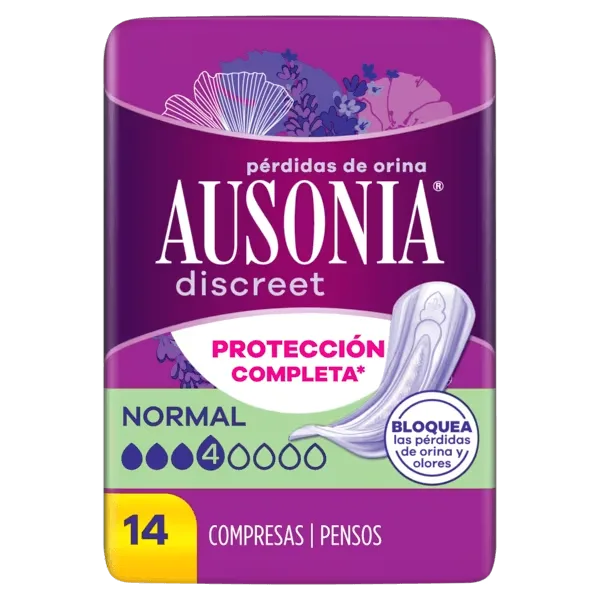 Las pérdidas de orina no deben frenarte. Las compresas para pérdidas de orina de Ausonia Discreet Normal ofrecen una protección segura que apenas notarás. Diseñadas para ajustarse a tu cuerpo y a tu vida, ofrecen una fuerte protección con un núcleo absorbente ultrafino único para que puedas andar con seguridad y sin preocuparte por las pérdidas. Si estornudar o reír te provoca pérdidas de orina, las compresas Ausonia Discreet Normal te ofrecen la protección ideal.